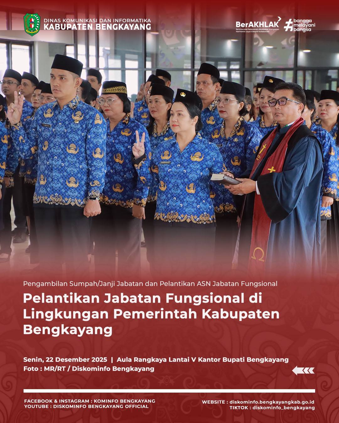 Bengakayang – Pemerintah Kabupaten Bengkayang dalam hal ini Sebastianus Darwis, S.E., M.M., Bupati Bengkayang melantik dan Pengambilan Sumpah/Janji Jabatan dan Pelantikan Aparatur Sipil Negara (ASN) ke dalam jabatan fungsional pada hari ini, Senin, (22/12/2025) di Aula Rangkaya Lantai V Kantor Bupati Bengkayang.