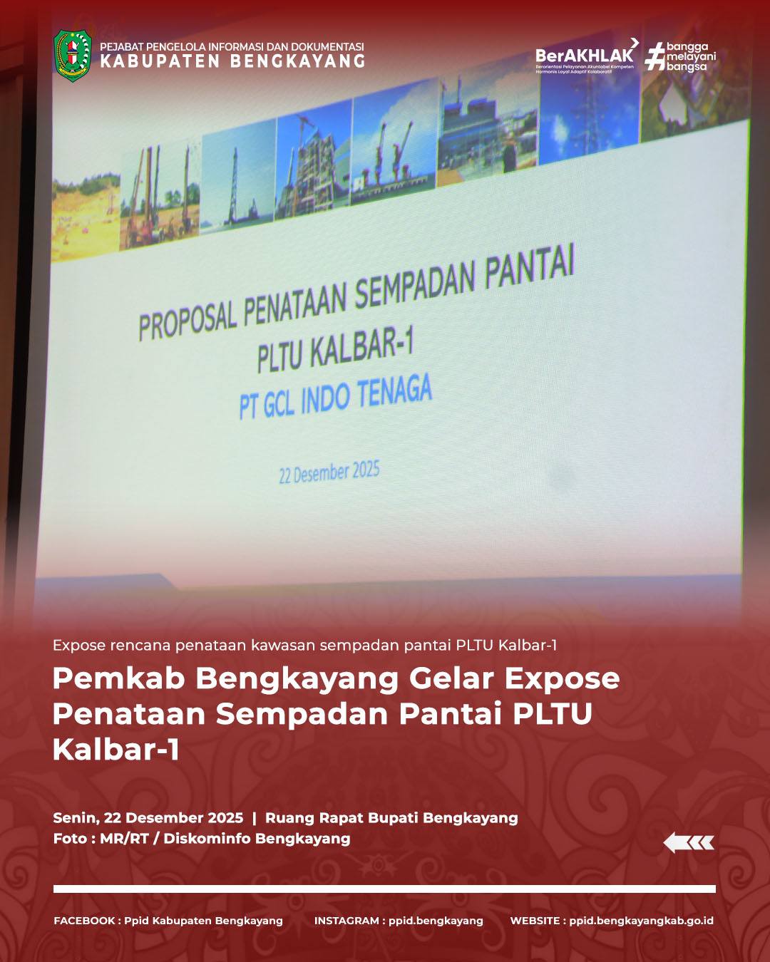 Bengkayang – Pemerintah Kabupaten Bengkayang menggelar expose rencana penataan kawasan sempadan pantai PLTU Kalbar-1 pada Senin (22/12/2025) pukul 14.00 WIB bertempat di Ruang Rapat Bupati Bengkayang. Kegiatan ini dilaksanakan sebagai tindak lanjut hasil penataan kawasan antara Pemerintah Daerah Kabupaten Bengkayang dan PT GCL Indo Tenaga.