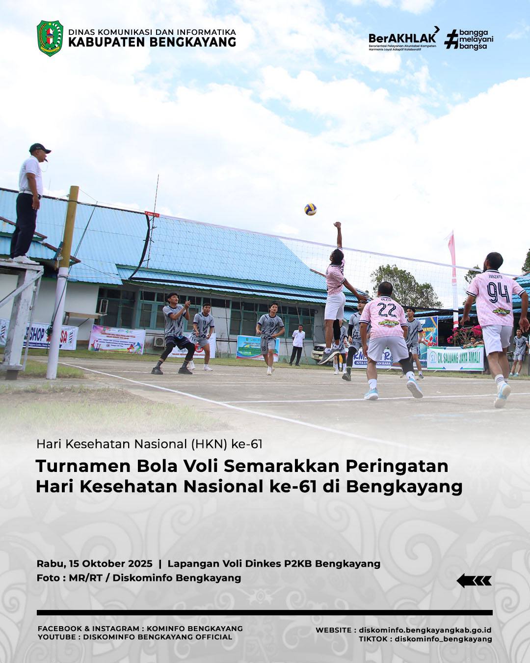 Bengkayang – Dalam rangka memperingati Hari Kesehatan Nasional (HKN) ke-61, Dinas Kesehatan, Pengendalian Penduduk dan Keluarga Berencana Kabupaten Bengkayang menggelar Turnamen Bola Voli yang diikuti oleh berbagai instansi pemerintah, swasta, dan fasilitas kesehatan se-Kabupaten Bengkayang pada (15/10/2025).
