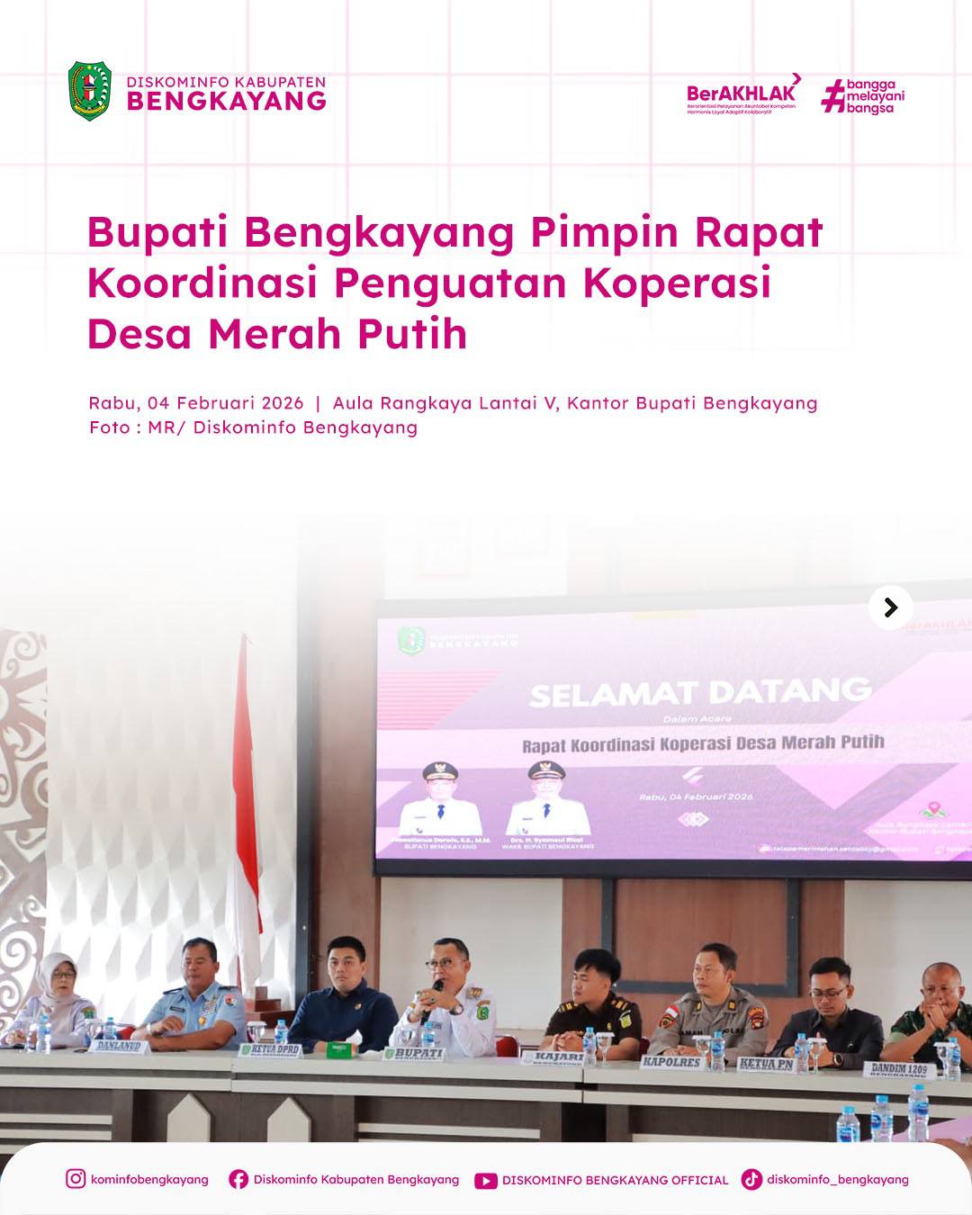 “Agar program Bapak Presiden dapat berjalan lancar di Bengkayang, pembangunan Koperasi Desa Merah Putih ini harus didukung oleh regulasi yang kuat dan koordinasi yang solid antarpihak. Kita harus memastikan penguatan kelembagaan ini dilakukan secara transparan dan terintegrasi agar dampaknya langsung dirasakan oleh masyarakat desa,” ujar Bupati Sebastianus Darwis.