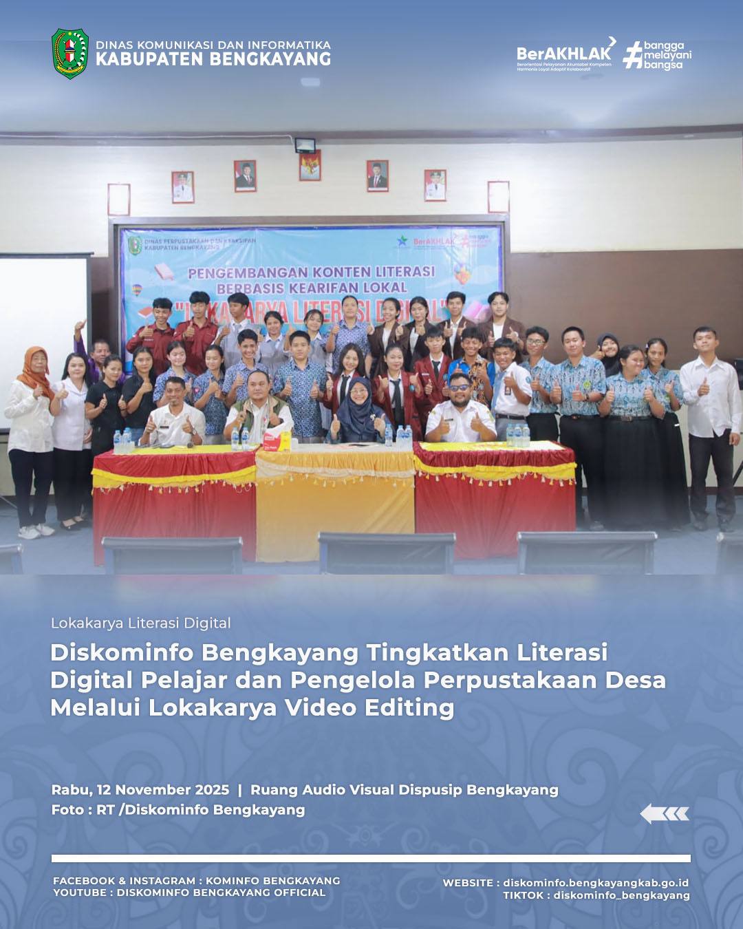Bengkayang – Dalam rangka meningkatkan kemampuan literasi digital masyarakat, Dinas Perpustakaan dan Kearsipan Kabupaten Bengkayang menyelenggarakan Lokakarya Literasi Digital Tahun 2025 pada Rabu, (12/11/2025). Kegiatan yang berlangsung di Ruang Audio Visual Dispusip ini diikuti oleh peserta dari kalangan pelajar/mahasiswa dan pengelola perpustakaan desa.