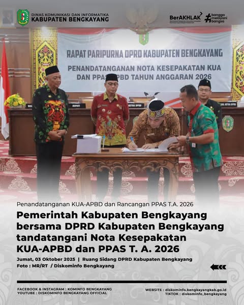 Bengkayang – Pada Jumat, (03/10/2025), bertempat di Ruang Sidang DPRD Kabupaten Bengkayang, telah dilaksanakan Rapat Paripurna Dewan Perwakilan Rakyat Daerah (DPRD) Kabupaten Bengkayang dalam rangka Penandatanganan Nota Kesepakatan Kebijakan Umum Anggaran Pendapatan dan Belanja Daerah (KUA-APBD) serta Rancangan Prioritas dan Plafon Anggaran Sementara (PPAS) Tahun Anggaran 2026.