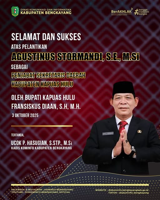 Selamat dan sukses atas pelantikan Bapak Agustinus Stormandi, S.E., M.Si sebagai Penjabat Sekretaris Daerah Kabupaten Kapuas Hulu
