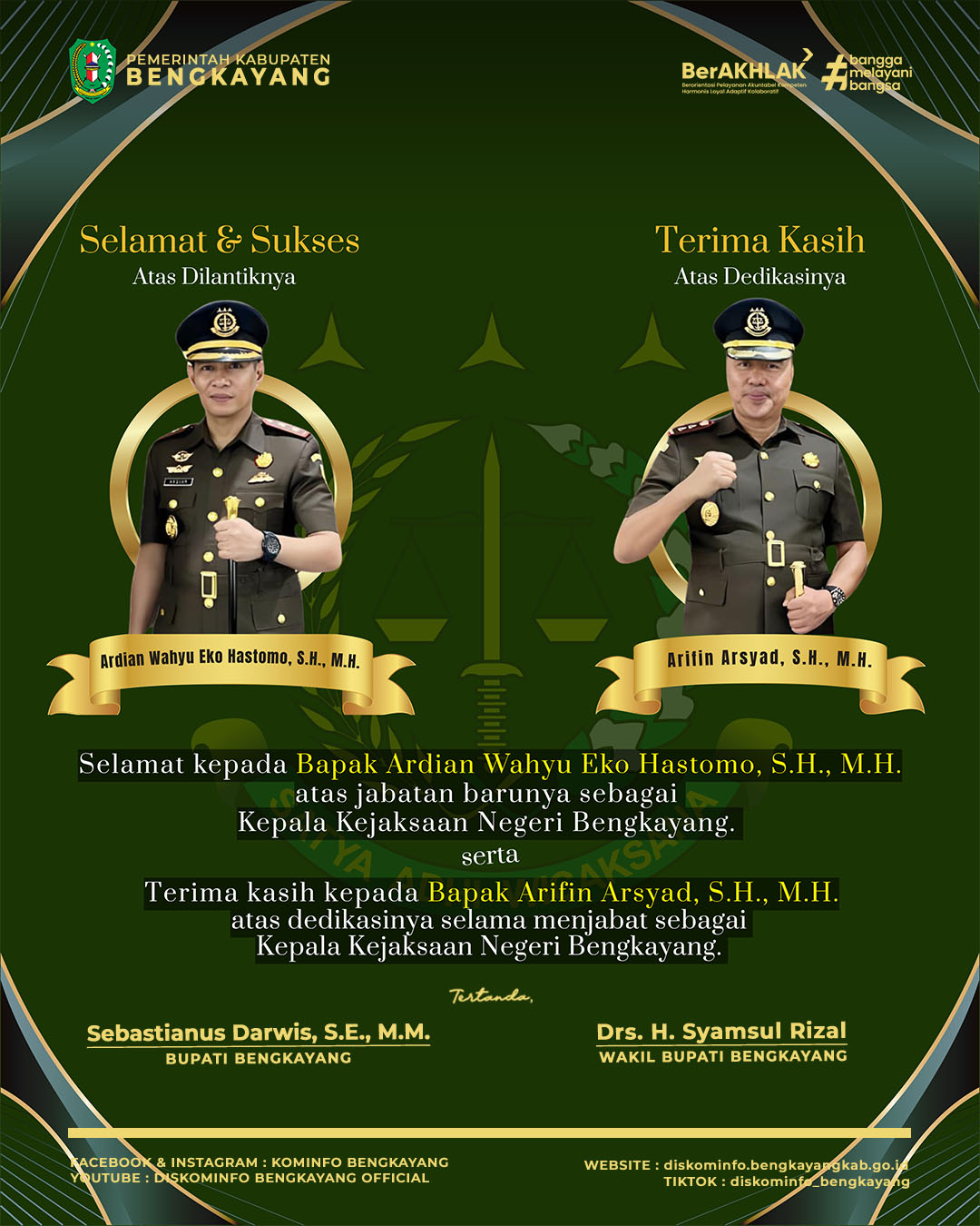 Congratulations and best wishes to Ardian Wahyu Eko Hastomo, S.H., M.H., on his new appointment as the Head of the Bengkayang District Prosecutor’s Office.