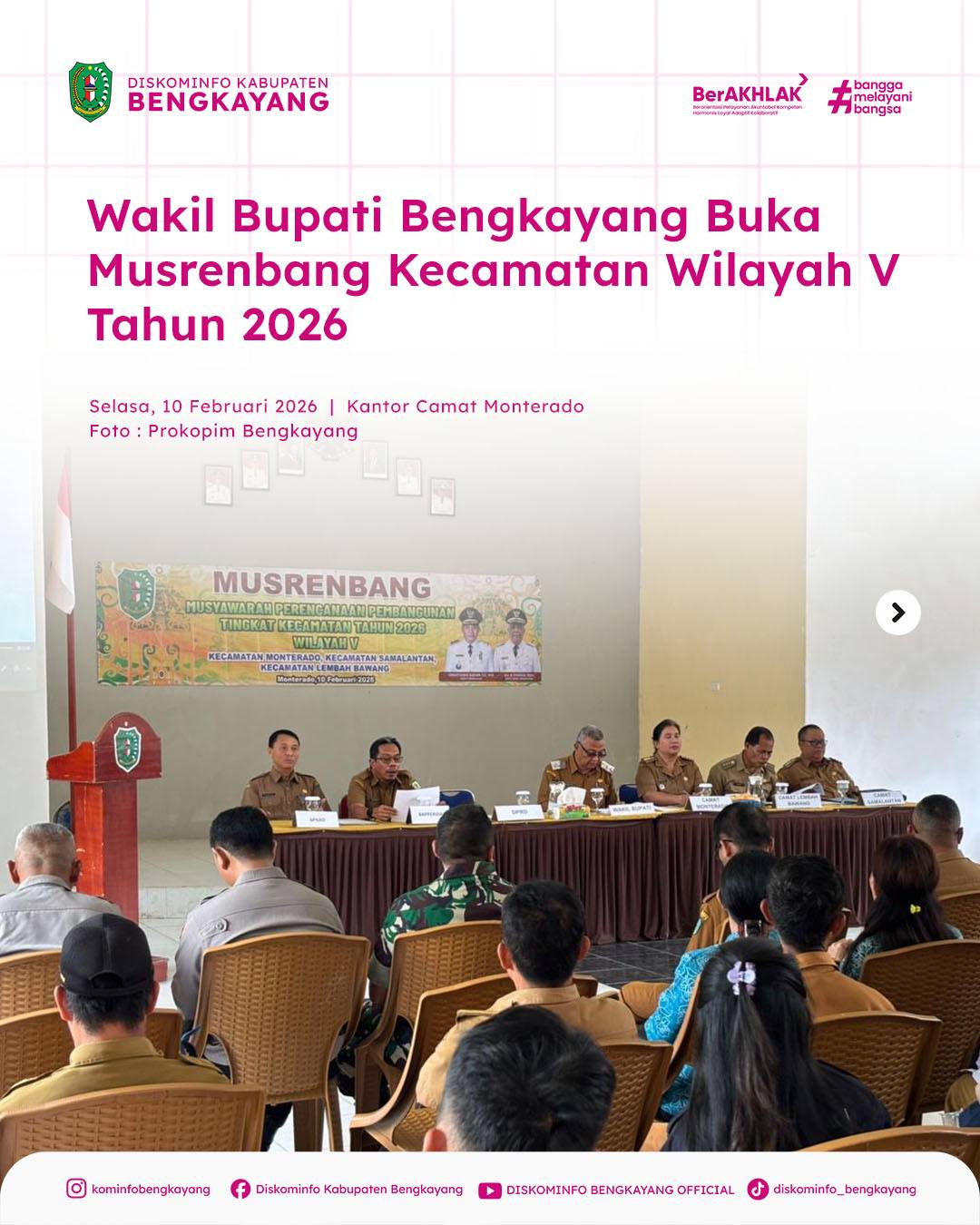 Bengkayang – Wakil Bupati Bengkayang, Drs. H. Syamsul Rizal, secara resmi membuka kegiatan Musyawarah Perencanaan Pembangunan (Musrenbang) Kecamatan Wilayah V Tahun 2026 dalam rangka penyusunan Rencana Kerja Pemerintah Daerah (RKPD) Kabupaten Bengkayang Tahun 2027, yang dilaksanakan pada 10 Februari 2026.
